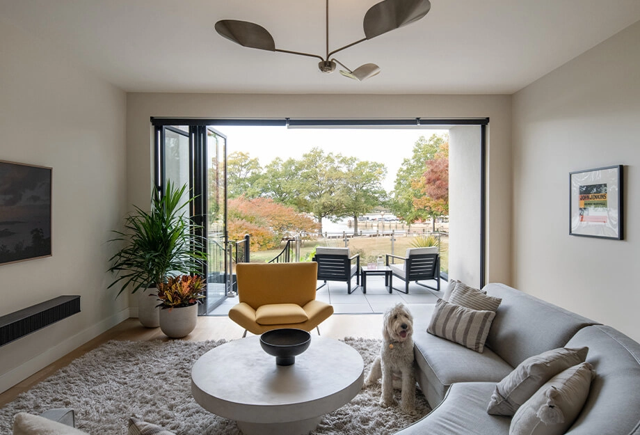 Originally built in 1960, this five-level home has been completely reimagined into a modern residence where thoughtful design and craftsmanship take center stage. What began as a traditional 2-bedroom, 2.5-bath layout is now a contemporary space that honors its mid-century roots while living beautifully for today. The redesigned floor plan features an expansive chef’s kitchen with custom cabinetry, a generous seated island, and seamless flow into the dining and living areas. Oversized windows and five-panel accordion glass doors open the entire rear of the home, capturing sweeping water views and creating effortless indoor–outdoor living. Wide-plank white oak floors, bespoke millwork, refined concrete accents, and sleek glass details were all chosen with intention—enhancing the way we truly live today.